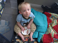 After eating his yogurt, Jackson was given the spoon to play with. What ensued was hair pulling, eye-gouging, and baby wrestling for the one spoon in play. We finally reached a compromise and both babies were given their very own spoon to play with.